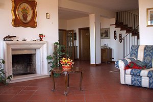 Il pianterreno è composto da cucina completamente accessoriata, sala da pranzo, sala TV con caminetto, tre camere doppie e tre bagni (di cui uno con doccia e uno con vasca). Dalla cucina si accede a una veranda arredata per mangiare all`aperto.